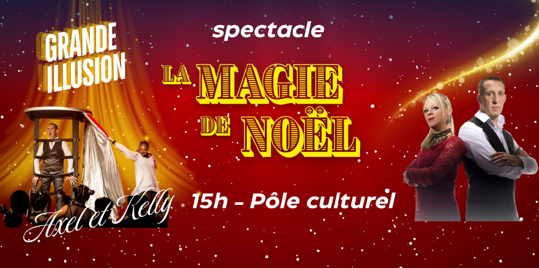 Bloquez dès maintenant votre dimanche 21 décembre après-midi et préparez-vous à retrouver les artistes Axel et Kelly, deux magiciens spécialistes de la Grande Illusion !